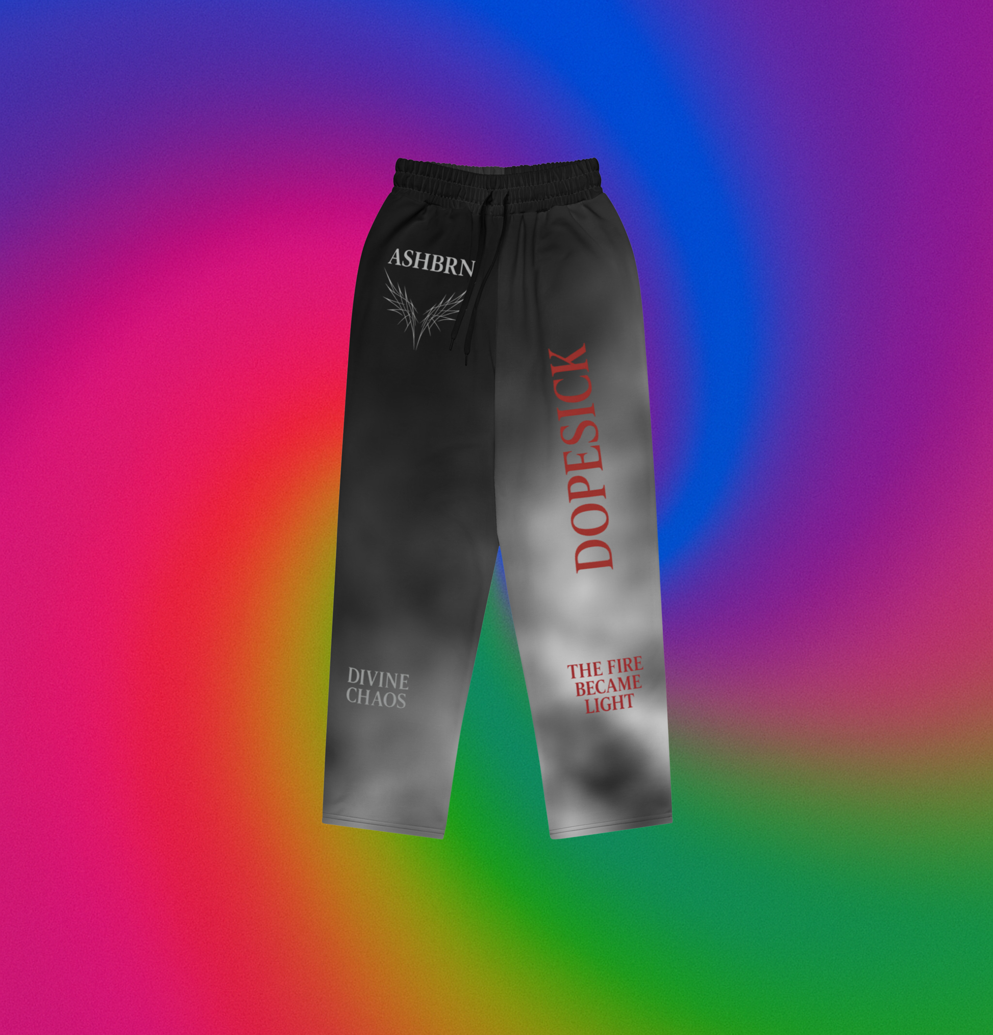 The Divine Chaos Joggers embody the essence of the Dopesick × ASHBRN collaboration: